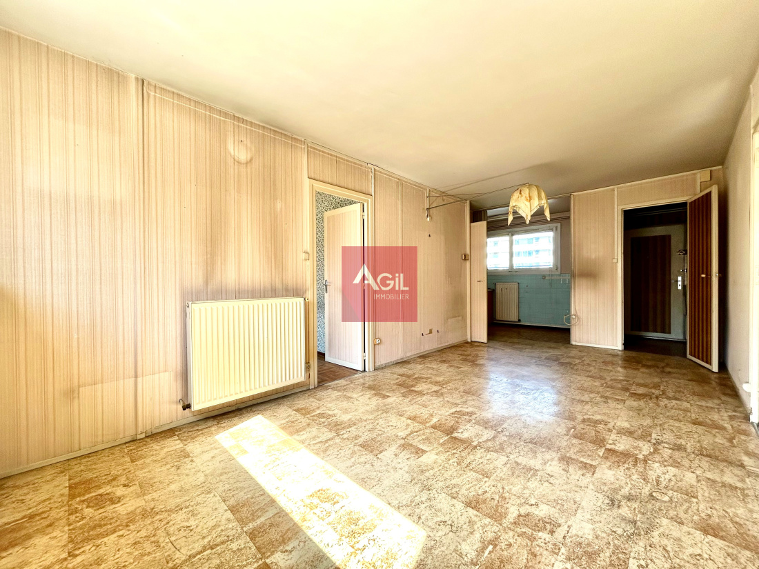 GRENOBLE - Au 62 rue Léon Jouhaux, dans une coprorpiété bien tenue, appartement de type T4 de 62,28m² à rénover. Il est actuellement composé d'une entrée avec rangement, d'un séjour avec cuisine attenante semi-ouverte, de trois chambres avec rangement et d'une salle d'eau. Ce bien est très modulable avec peu de murs porteurs. Une cave en sous-sol et facilité de stationnement. Charges annuelles : 840€ Copropriété de 40 lots principaux Prix de vente : 80 000€ honoraires charge acquéreur. Les informations sur les risques auxquels ce bien est exposé sont disponibles sur le site Géorisques du Gouvernement.